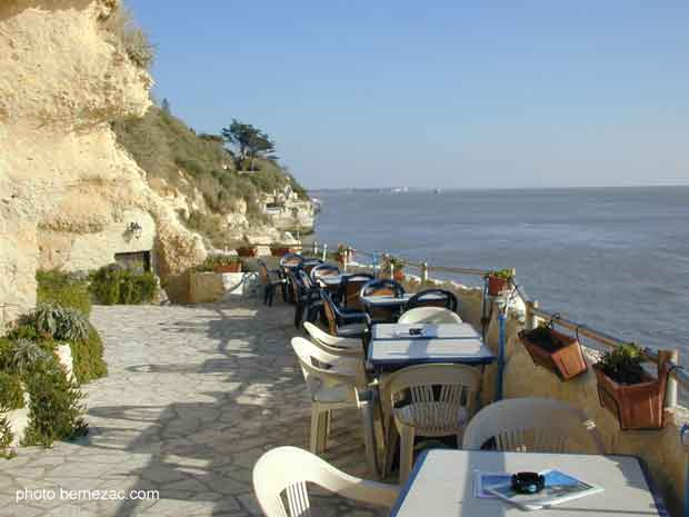Meschers, grottes de Matata, terrasse, vue sur l'estuaire et Talmont