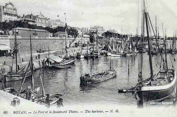 Royan - Le Port et le Boulevard Thiers avec au centre en arrière-plan le Café des Bains