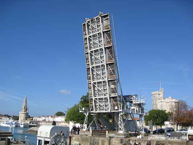 La levée du pont pour permettre par exemple la sortie d’un yacht est spectaculaire, surtout quand on est touriste et qu’on a tout son temps, ce qui n’est pas toujours le cas des automobilistes Rochelais en attente du repositionnement du pont.